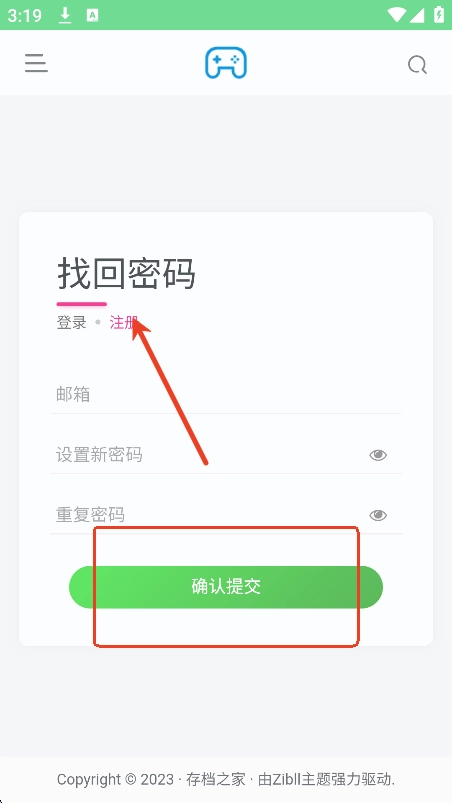 5、或者直接进入注册板块,输入邮箱,密码,新密码,点击确认提交就可以了