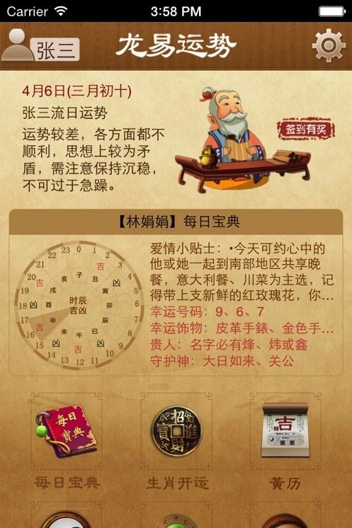 个人每日、每月、每年运势及时播报。