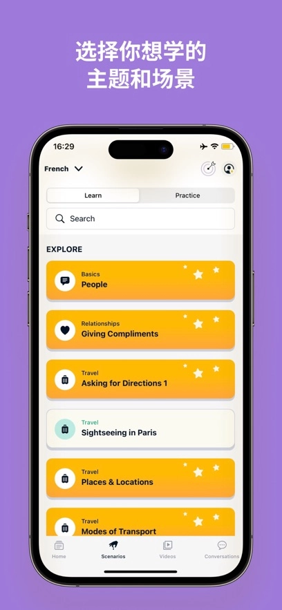 忆术家为用户提供多个国家和地区的语言学习课程,每天仅需十五分钟就能开展学习;软件内设有多种不同的学习模式供用户选择,用户可依据自身需求挑选不同场景或主题的语言词汇,助力用户更顺畅地与当地人进行日常交流。