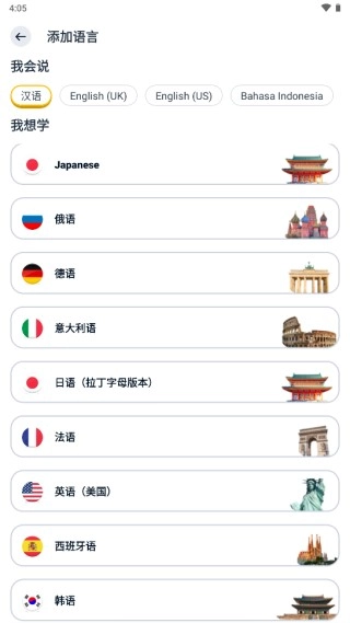 忆术家专注语言学习服务,软件中支持多个国家的语言,能够满足用户学习外语的需求。