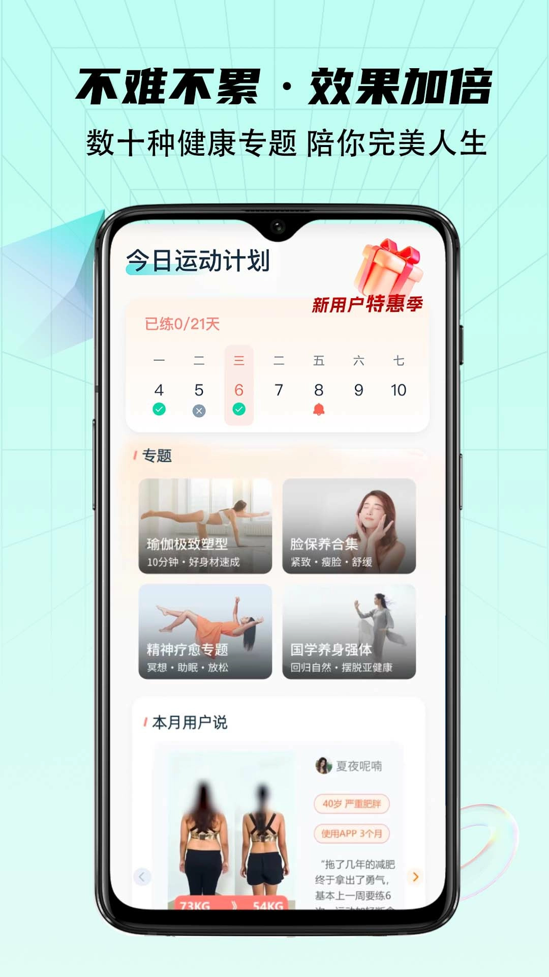 3、打造懒人瘦身计划模式,每天在家也能轻松瘦身。