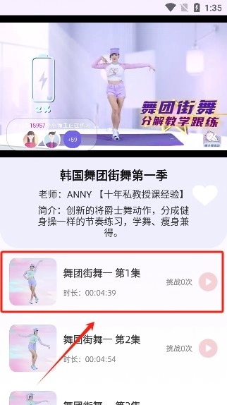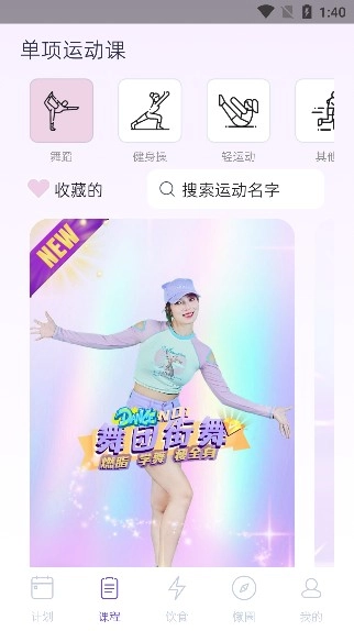 2、在软件底部可以看到许多的功能点击课程即可开始跟着视频更练了