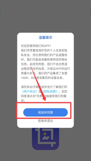 2、点击阅读并同意按钮进入主页。