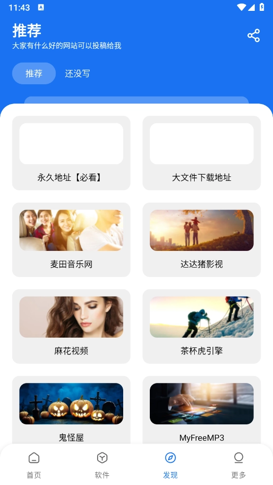 5、在“发现”栏目,汇集了很多的网址资源,也可以分享自己认为优质的网址。