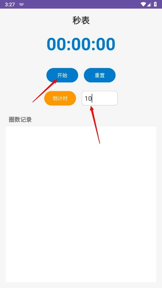 3、点击"秒表"进入,在页面设置相应的倒计时,点击"开始"。