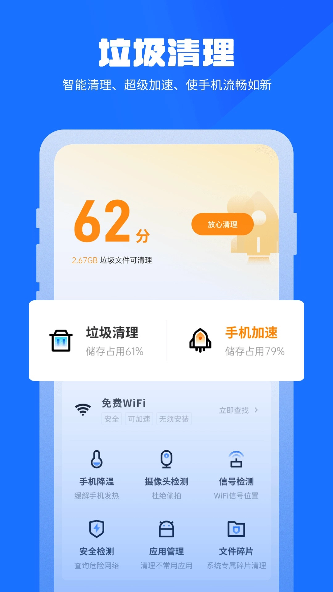 2)通过在线清算服务,清理垃圾文件,提高手机运行效率。