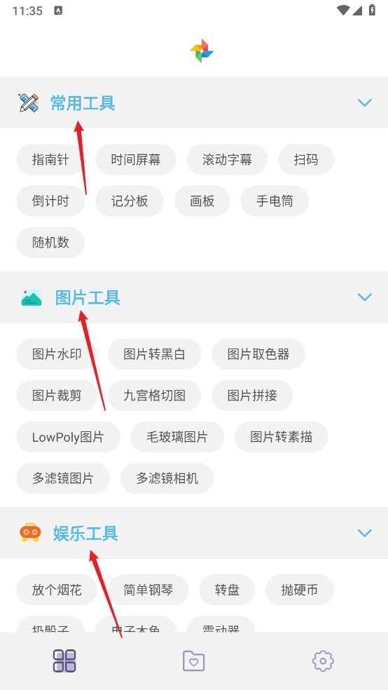 2、进入软件,涵盖了常用工具、图片工具和娱乐工具,一键点击直达。