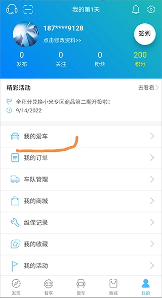 1、打开应用程序并完成登录操作后,进入“我的”页面,找到并点击“我的爱车”选项。