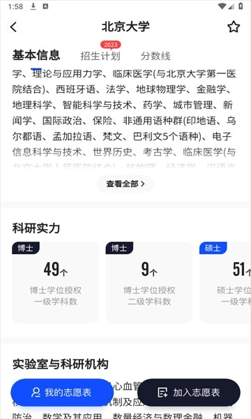 3、点击进入就会拥有详细的介绍,包括基本信息,分数线,历届招生计划。
