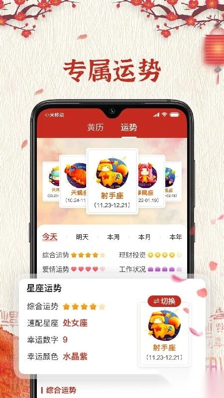 择日万年历能为你提供与众不同的功能,包括精准的八字解析、名字分析以及塔罗占卜等服务,助力你了解个人命运与人生走向,获得别样的事宜辅助。
