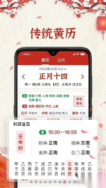 根据八字、五行、天干地支等占卜术,确定每天的宜忌信息;