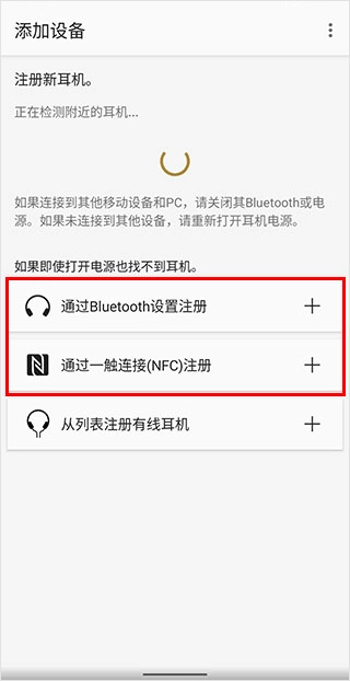 2、如果此时打开电源软件检测不到耳机,那么我们选择通过Buletooth设置注册或者下方的一触连接(需要手机支持NFC)手动链接耳机;