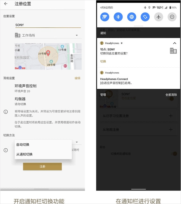 开启更新版自适应声音控制功能后,可自动检测你的活动状态和活动地点 *1,并通过学习和识别你常去的场所,比如办公室、健身房或咖啡厅,可自动切换预设的环境声和降噪方案,实现智能降噪。