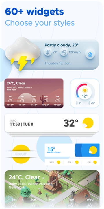 软件提供了准确了天气信息,还拥有多种主题风格,可以自由切换,满足你个性化的需要