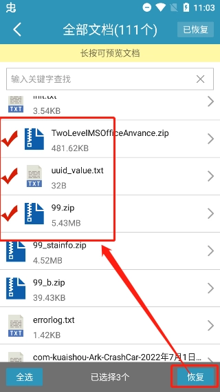 3、具备极速扫描模式,极速检测并恢复手机数据。
