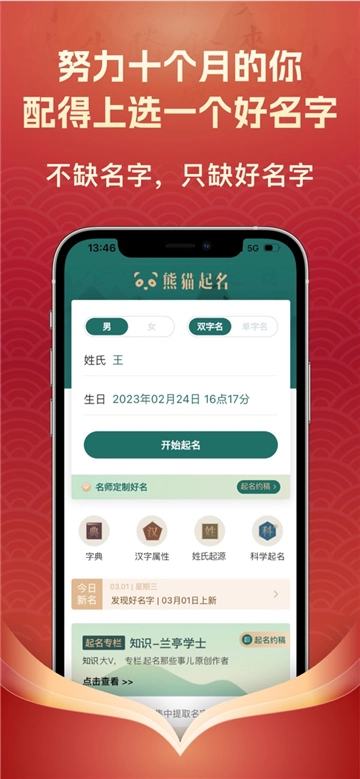 熊猫起名宝宝取名软件,百万年轻父母的选择。
