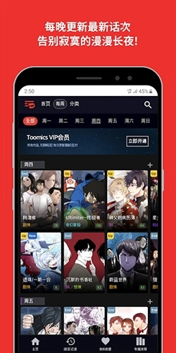 1. 丰富的漫画资源:toomics提供了海量的漫画作品,包括完结、剧情、校园、奇幻冒险等多种类别,让用户可以根据自己的喜好选择喜欢的作品。