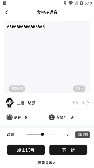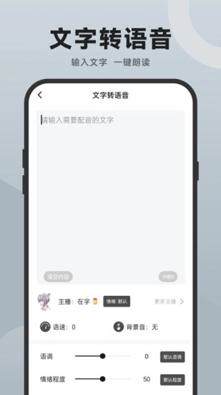 3、选择你喜欢的主播音色,调节语速,设置背景音乐