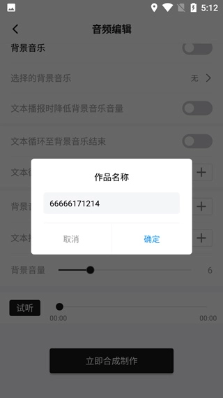 4、点击试听,点击下一步,合成制作满意后为作品命名