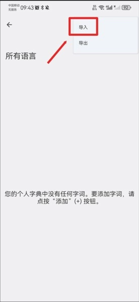 6、最后选择导入并在手机文件中选择你要带入的词库文件进行导入即可