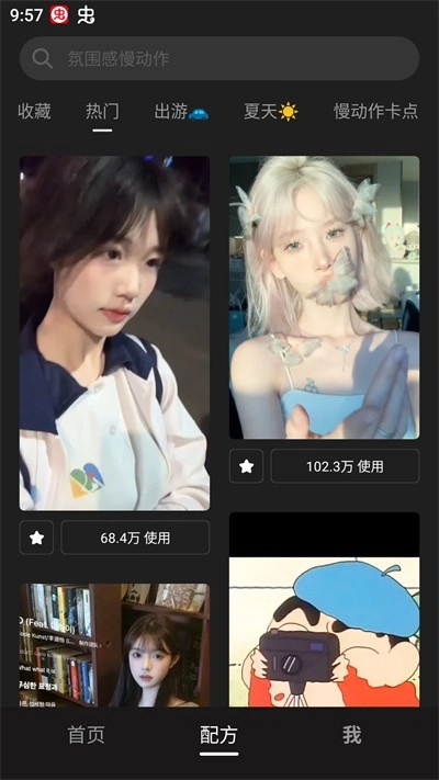 5、点击配方功能能够查看更多网友拍摄的好看视频,点击对应热门视频可以查看拍摄的配方,让你也可以轻松拍摄出对应的视频效果;