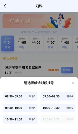 4、然后选择适合自己的就诊时间;
