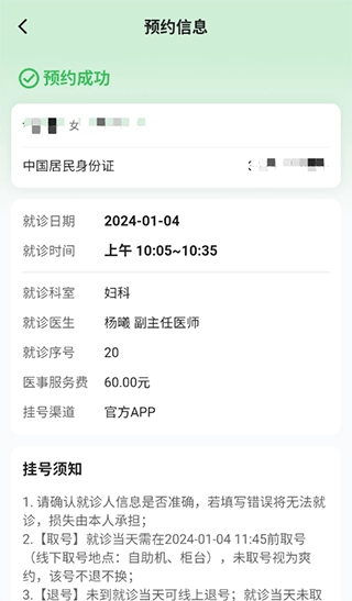 1、请确认就诊人信息是否准确,若填写错误将无法就诊,损失由本人承担;