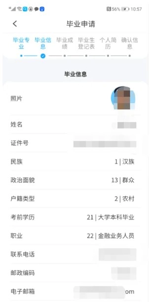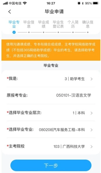 5、完成信息核对,无误后,点击下一步,进入毕业成绩界面