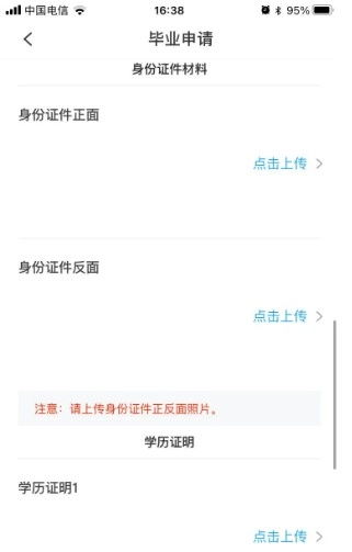 8、若考生在申请本科毕业时,前置学历认证不通过,则需要上传学历证明材料;若考生有单科合格证或转入等成绩,可以上传相关证明材料;上传完材料后,点击下一步,进入个简历界面。