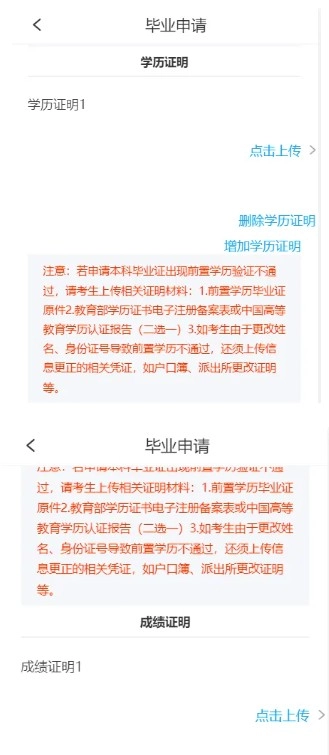 4、若申请本科毕业,系统会对考生前置学历进行认证(若认证不通过,考生需要上传学历证明材料);本科毕业,同意学历认证后,完成在线学历认证