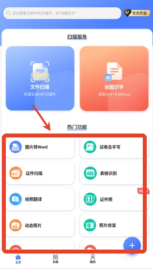1、用户打开扫描大师手机安卓版,软件主页里面,有着很多实用功能。