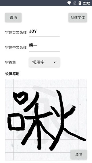 4. 用户可以通过下方的按钮调整创作字体的笔刷效果,或者选择清除已创作的部分进行重新设计。