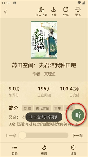 3、选择一本要听的书打开,然后点击右下角的听