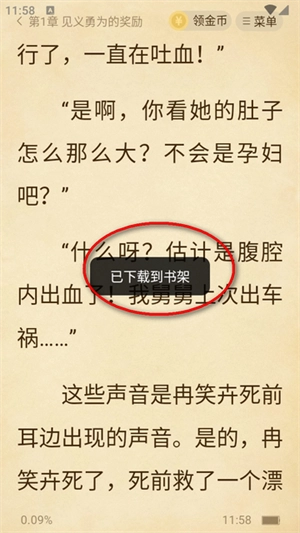 1、打开并进入目标小说的阅读页面,点击屏幕中间呼出菜单,接着点击右上角的按钮