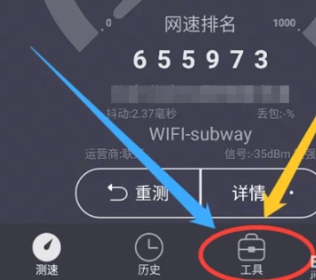 1、登录测网速首页后,点击页面底部的【工具】图标