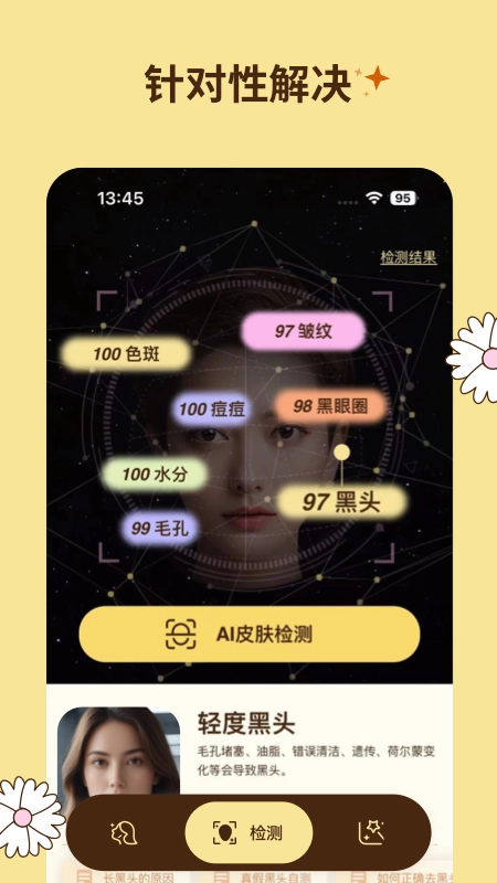 3.使用AI面部检测功能,拍照扫描你的面部,会给出相应的面部瑜伽建议和护肤小建议