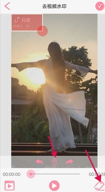 3、进入选择视频页面选,选中要去水印的视频,再点击“√”按钮