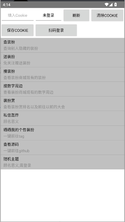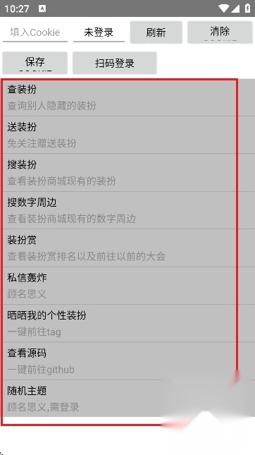 2、然后就能看到软件中提供了查装扮,送装扮,搜装扮,搜数字周边等功能。