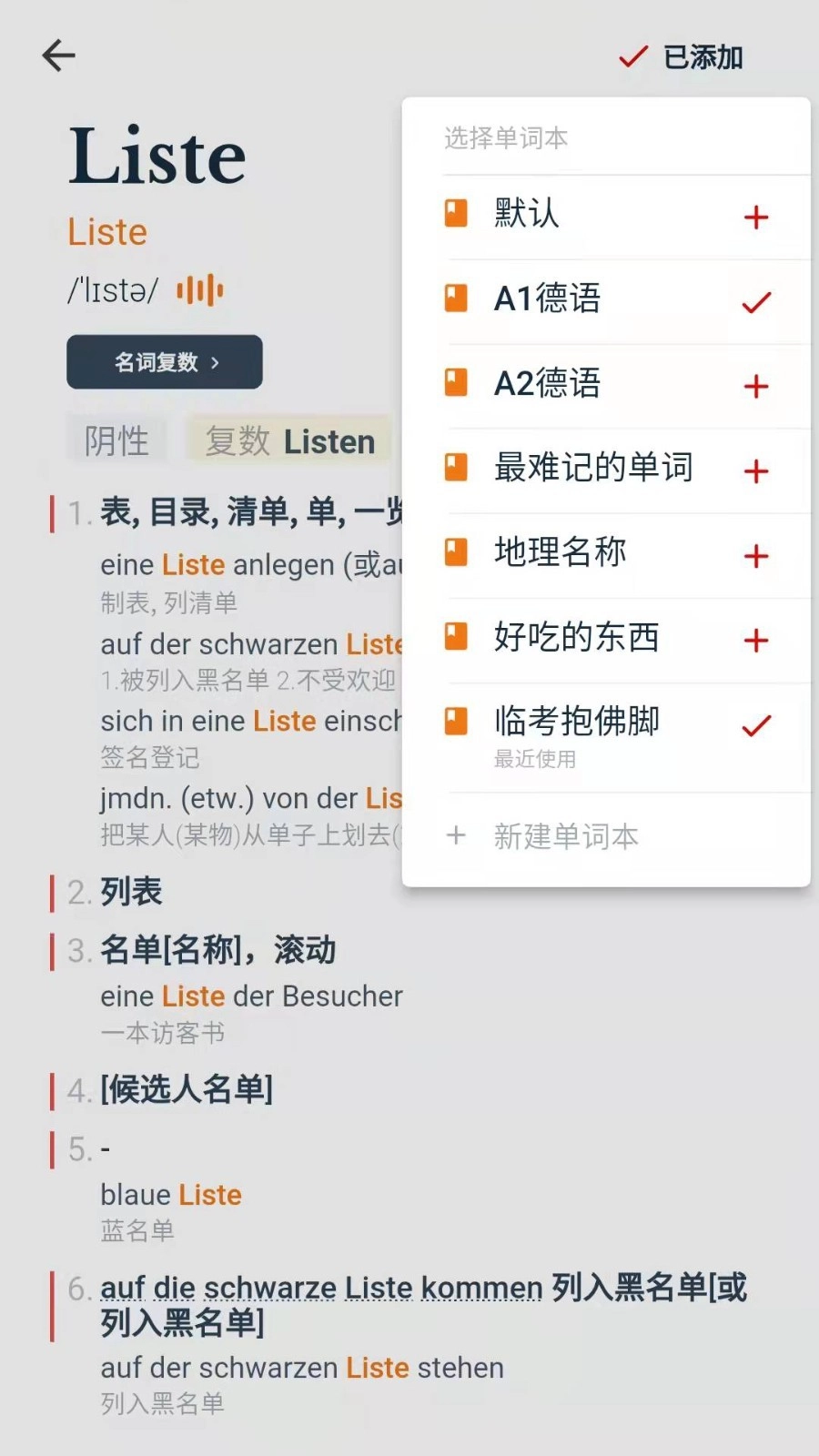 内容专业准确:经由专业教学机构审核校对,精准提供释义、词性、例句、用法说明、名词阴阳性属性、名词类别划分,以及完成时搭配“haben”还是“sein”等各类关键信息。