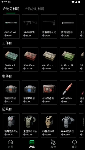 3、界面和内容以装备和材料为中心,展示各种类型的突击步枪和子弹。