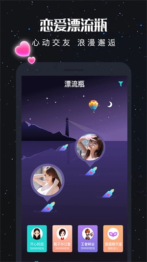 新漂流瓶是一款备受欢迎的社交软件,主打年轻群体社交风格。用户可以在这里结识各类好友,通过与好友互动解锁更多趣味玩法,操作简单便捷,让交友过程轻松愉快,还能体验温馨的恋爱氛围。
