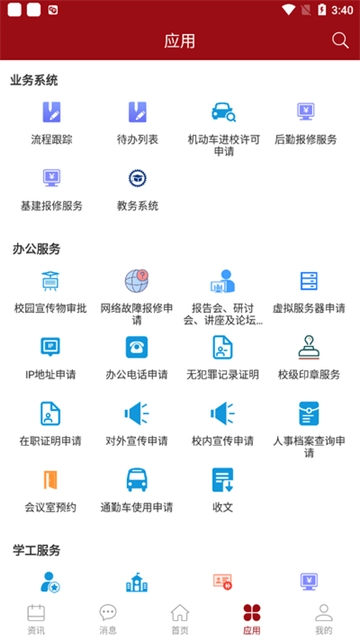 学生可进行课表与成绩的查询,还能管理校园卡,以及使用图书馆的各类资源。