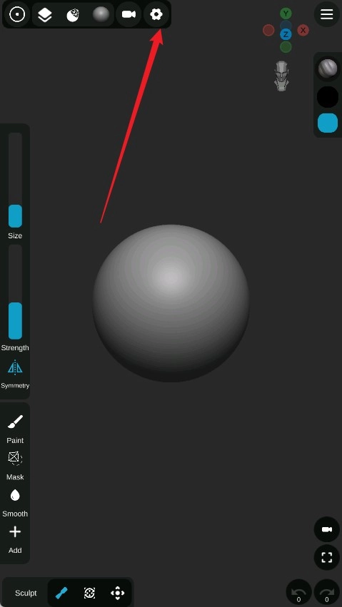 1、启动Sculpt+建模软件,进入主界面后,点击顶部呈齿轮形状的“设置”图标。
