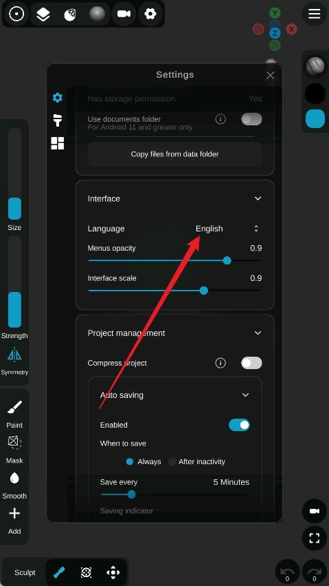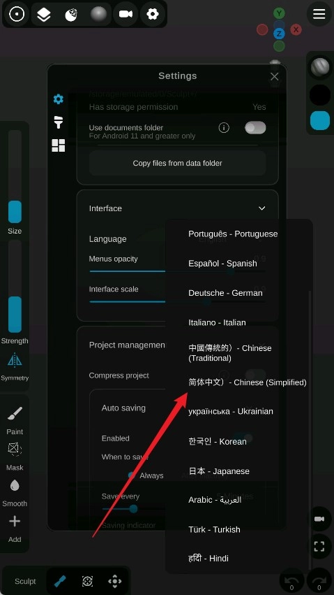 sculpt软件怎么设置中文?