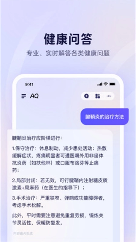 AQ ai安卓最新版是由蚂蚁集团开发并运营的医疗健康AI应用,智能分级医疗咨询系统,针对复杂病症可在30秒内完成深度解析,简单问题则能实现5秒极速响应。该软件依托蚂蚁自主研发的Ant大模型,为用户提供医疗健康领域各类问题的咨询服务,涵盖病症解答、用药指导等,并能给出个性化建议;同时支持多场景图片智能识别,打造从咨询到就医的一站式服务闭环。此外,还具备个性化健康方案定制、多语言医疗支持以及数据加密存储等功能,全方位为用户的健康保驾护航。
