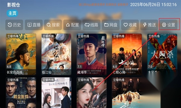 1、启动艾丝沐TV应用程序,初次使用时需进行接口配置,请点击设置选项。