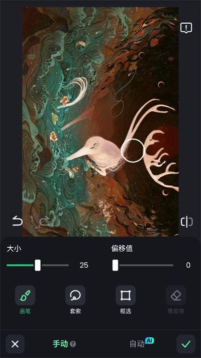 杂物移除功能支持两种操作方式:用户既能通过画笔、套索等便捷工具手动圈选需要清除的区域,也可以启用智能自动检测功能来完成内容去除。