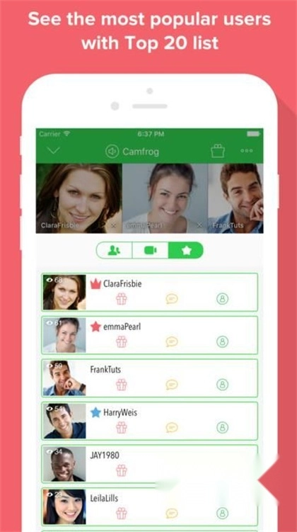 2、通过手机加入数以万计的聊天室之一,与世界上任何人视频聊天。