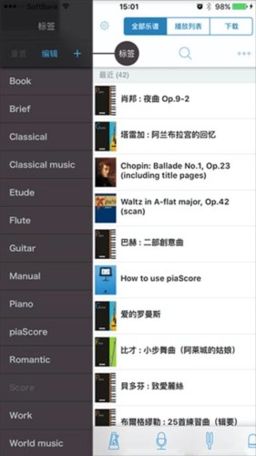 您可以通过标签和播放列表管理大量的乐谱。有强大的排序和关键词搜索。