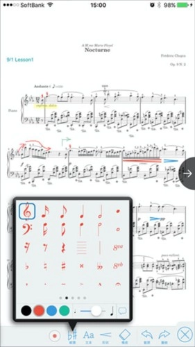 通过手写直接在乐谱上进行标记、注释、以及可以添加新的音符,非常的实用。